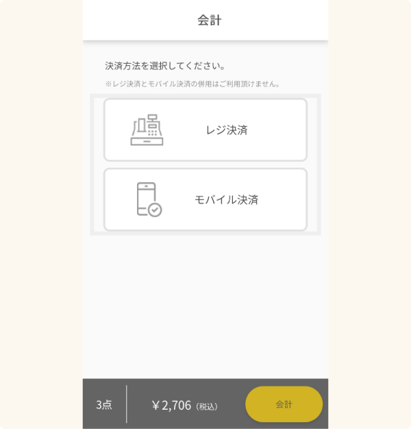 モバイル決済は、クレジットカード、コード決済に対応しています。