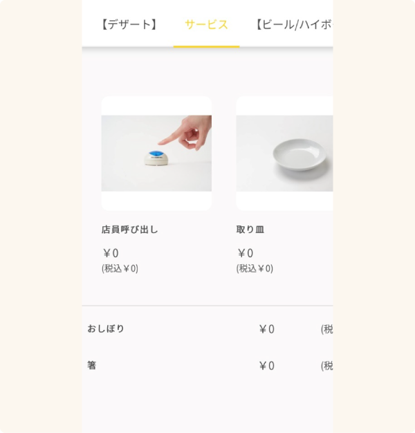 また、店舗のオペレーションに合わせて、対面注文やテイクアウトでの利用もできます。